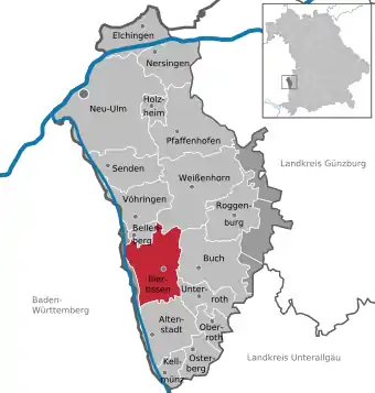 Les communes voisines, dans le sens des aiguilles d'une montre, sont Bellenberg, Weißenhorn, Buch, Unterroth, Altenstadt an der Iller, Balzheim et Dietenheim. À l'ouest, se trouve le secteur non communal de « Auwald » umschlossen, avant d'arriver à la frontière au Land de Bade-Wurtemberg et les communes de Dietenheim et Balzheim.