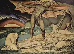 En 1826, William Blake peint une dernière œuvre sur le thème de Job, une peinture a tempera représentant Satan frappant Job d'une lèpre maligne[4].