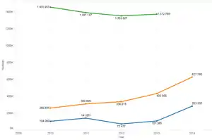 Le rapport 2014 de l'OCDE sur les migrations internationales estime les entrées de migrants en 2013 dans l'OCDE à 3,8 millions, dont 990 000 aux États-Unis, 465 000 en Allemagne, 291 000 au Royaume-Uni, 258 900 en France[21], 258 400 en Italie[21], 253 500 en Australie et 209 800 en Espagne[21]. L’OCDE relève que les migrations de travail ont diminué de façon continue depuis la crise économique, reculant de 12 % en 2012. Cette baisse a été particulièrement notable dans l’Espace économique européen, où les migrations de travail ont reflué de presque 40 % entre 2007 et 2012. À l'inverse, le conflit en Syrie a contribué à l’augmentation de 20 % du nombre de demandes d’asile en 2013. Au total, plus de 550 000 personnes ont déposé une demande dans un pays de l’OCDE[22].