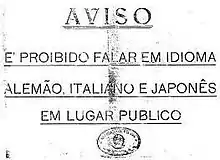 Quand le Brésil déclara la guerre au Japon, les Japonais furent persécutés par le gouvernement brésilien, et comme ce fut le cas avec la langue des communautés allemande et italienne du pays, le japonais fut interdit sur tout le territoire. Les écoles japonaises furent fermées et les manifestations culturelles interdites.