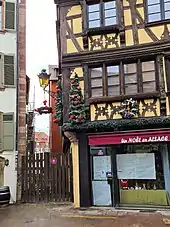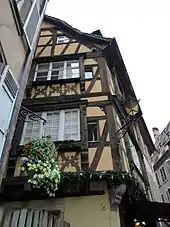 La maison à colombages qui forme l'angle avec le no 10 de la rue des Dentelles, richement sculptée, porte les initiales H. S. du tanneur Hans Schenk et le millésime 1565[4]. Les façades, les toitures et l'escalier font l'objet d'un classement au titre des monuments historiques depuis 1927[5].