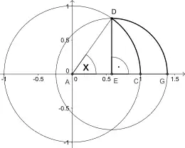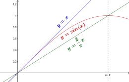 Cela peut être prouvé en utilisant la concavité de la fonction sinus dont la courbe est au-dessus de ses sécantes et en-dessous de ses tangentes[2], ou géométriquement comme ci-dessous[3].