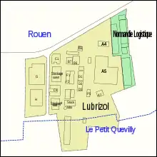 L’usine Lubrizol de Rouen est implantée depuis 1954 sur 14 hectares[3] d'une zone industrialo-portuaire, au sud-ouest de la ville de Rouen, principalement sur la commune de Rouen, mais aussi sur Le Petit-Quevilly (où l’habitat est plus présent)[3]. Elle appartient au groupe américain Lubrizol Corporation qui fut dès la fin des années 1920 pionnier dans le domaine des additifs pour lubrifiants. Cette société est aujourd'hui propriété de Berkshire Hathaway, la holding du milliardaire et investisseur américain Warren Buffett. Elle possède en France trois usines, dont le site de Rouen qui accueille également une grande partie des services supports européens, ainsi que Lubrizol Holdings France et le siège de Lubrizol Advanced Material France. 300 personnes environ y travaillent[4].