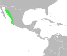 Cette espèce est endémique du Mexique. Elle se rencontre sur le versant pacifique de la Sierra Madre occidentale dans le sud-ouest du Sonora, dans le sud du Chihuahua, au Sinaloa, dans le Sud du Durango, au Nayarit, au Jalisco et au Colima[1].
