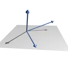 Dans l'espace vectoriel ℝ3, les trois vecteurs (2, –1, 1), (1, 0, 1) et (3, –1, 2) forment une famille liée car (2, –1, 1) + (1, 0, 1) – (3, –1, 2) = (0, 0, 0).