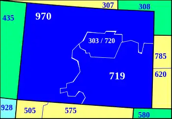 Les indicatifs régionaux 303 et 720 sont les indicatifs téléphoniques régionaux qui desservent le centre-nord de l'État du Colorado aux États-Unis, incluant la capitale de l'État, Denver.