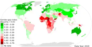L'indice d'inégalité de genre ou IIG (en anglais : gender inequality index ou GII) est un indice créé par l'Organisation des Nations unies destiné à évaluer les différences entre les genres dans la distribution des progrès et à estimer la perte de développement humain due aux écarts de traitement entre hommes et femmes[1]. Il fait partie des indices de développement humain. Il est estimé selon trois dimensions : la santé reproductive des femmes, leur autonomisation et le marché du travail[2],[1], et il permet ainsi d'estimer les pays dans lesquels les femmes sont plus ou moins désavantagées[1]. Sa valeur est comprise en 0 et 1 et plus sa valeur est élevée, plus le pays est inégalitaire entre hommes et femmes[3].