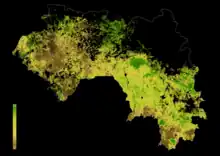 | Pays | IIPF moyen | Faible intégrité (km2) | Intégrité moyenne (km2) | Haute intégrité (km2) | Superficie forestière totale (km2) | Carte |