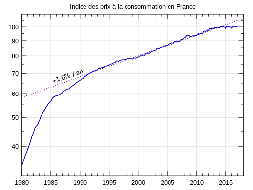 - « Indice des prix à la consommation - Base 2015 - Ensemble des ménages - France - Ensemble hors tabac », sur Institut national de la statistique et des études économiques (consulté le ).