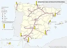 En 2020, l'Espagne était le 87e producteur mondial de pétrole, avec une production quasiment nulle[1]. En 2019, le pays a consommé 1,22 million de barils par jour, étant le 18e consommateur du monde[2],[3]. De même, l'Espagne était le neuvième importateur mondial de pétrole en 2013 (1,22 million de barils par jour)[1].