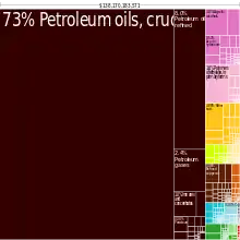 En 2010, l'Iran, qui exporte environ 2,6 million de barils de pétrole brut par jour, est le second exportateur parmi les pays de l'organisation des pays exportateurs de pétrole[55]. Plusieurs grandes économies dépendent du pétrole iranien : les importations de pétrole iranien représentent 10 % des importations de pétrole sud-coréennes, 9 % des importations indiennes et 6 % des importations chinoises[10]. Par ailleurs, le pétrole iranien constitue 7 % des importations de pétrole japonaises et 30 % des grecques ()[10]. L'Iran est également un fournisseur majeur de pétrole pour l'Italie et l'Espagne[55].