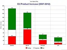 En 2012, l'Iran, qui exporte environ 1,5 million de barils de pétrole brut par jour, était le second plus grand exportateur des pays de l'Organisation des pays exportateurs de pétrole[8]. La même année, les autorités iraniennes estiment que les revenus annuels engendrés par cette industrie pourraient atteindre 250 milliards de dollars en 2015[9]. Selon une estimation de l'IHS CERA, les revenus pétroliers de l'Iran ont augmenté d'un tiers sur l'exercice 2011 pour atteindre 100 milliards de dollars, malgré les sanctions américaines[10]. L'Iran prévoit d'investir un total de 500 milliards de dollars dans le secteur pétrolier avant 2025[11].