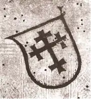 - Écusson de l’hôpital de Strasbourg au XIVe siècle, il orne la couverture d’un Obituaire de l’hôpital. Il contient dans un calendrier liturgique tous les legs et donations, messes anniversaires, distributions d’aliments, rentes viagères, etc., faits au profit de l’hôpital.