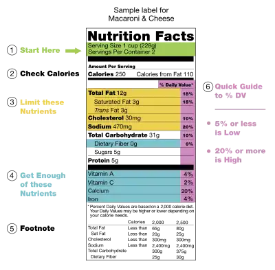 Aux États-Unis, l'étiquette nutritionnelle est obligatoire, elle apparaît sous la forme d'un tableau intitulé Nutrition Facts[29].