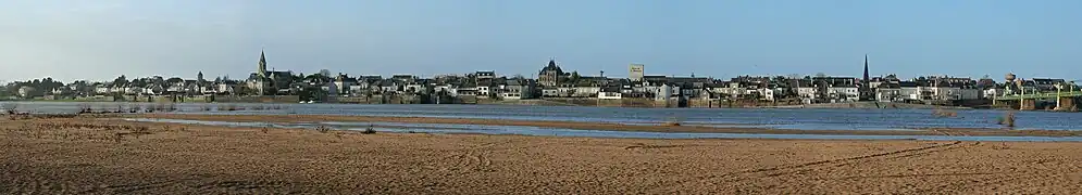 Vue générale d'Ingrandes (Maine-et-Loire) (la Loire à gauche et la boire de Champtocé à droite). | |||||