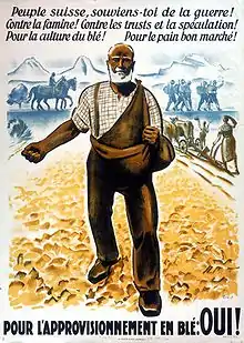 Pendant la première moitié du XXe siècle, les céréales et la pomme de terre sont les principales cultures en Suisse ; cette situation est en particulier due à la plus grande stabilité financière apportée par cette activité par rapport à l'élevage bovin. Au déclenchement de la Première Guerre mondiale, le besoin en culture céréalière indigène se fait brutalement sentir, forçant les autorités à prendre des mesures énergiques de promotion et d'établir un monopole d'importation impopulaire : la proportion de production indigène de pain n'atteint cependant, au moment où l'initiative est lancée, qu'un cinquième des besoins nationaux[2].