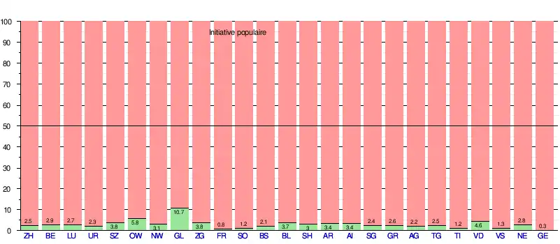 Soumise à votation le , l'initiative est refusée par la totalité des 19 6/2 cantons[NB 3] et par 97,3 % des suffrages exprimés[6], ce qui représente le refus le plus net jamais enregistré pour une initiative populaire[7]. Le tableau ci-dessous détaille les résultats par cantons pour ce vote[8] :