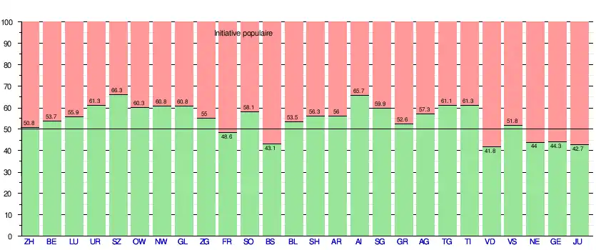 Soumise à la votation le , l'initiative est acceptée par 15 5/2 cantons[NB 2] et par 52,9 % des suffrages exprimés[11]. Le tableau ci-dessous détaille les résultats par cantons[11] :
