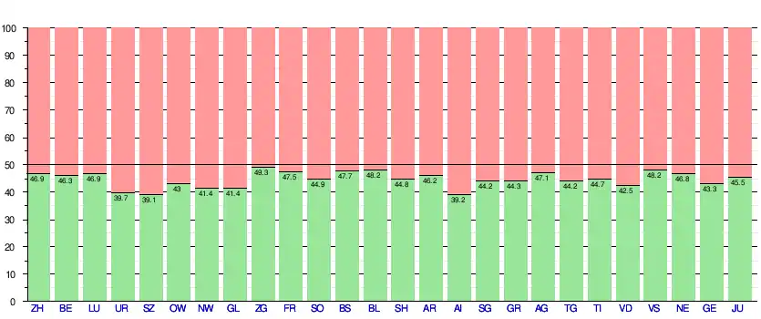 Le contre-projet du gouvernement est, quant à lui, rejeté par la totalité des 20 6/2 cantons et 54,2 % des suffrages exprimés[11]. Le tableau ci-dessous détaille les résultats par cantons pour ce contre-projet[11] :