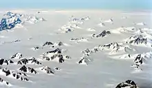 - une absence de relief émergeant, à l'exception des nunataks.