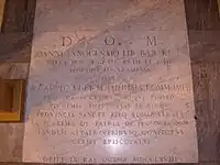 Plaque mémoriale dans l'Église Madonna del Pascolo de Rome (en latin)
