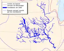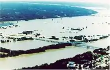 L'Inondation de 1993 du Midwest américain s'est produite entre avril et octobre 1993 dans le bassin du fleuve Mississippi et de ses affluents, dont la rivière Missouri, à la suite de pluies soutenues débutant l'automne précédent. L'inondation de la région du Midwest est l'une des plus dévastatrices et des plus coûteuses de l'histoire des États-Unis, causant pour plus de 15 milliards $US (1993) de dégâts et la mort de 50 personnes[1]. Elle a affecté une bonne partie des États du Dakota du Nord, du Dakota du Sud, de l'Illinois, de l'Iowa, du Kansas, du Minnesota, du Missouri, du Nebraska et du Wisconsin, une zone de 1 200 kilomètres de long sur 700 kilomètres de large. La superficie inondée[2] sur ce territoire fut de 80 000 km2. C'est la plus importante inondation depuis celle de 1927 en termes de durée, de surface inondée, de personnes déplacées, de dommages aux récoltes et à la propriété, ainsi que de dépassement du niveau des eaux. L'inondation de 1993 a même dépassé celle de 1927 dans certains domaines.