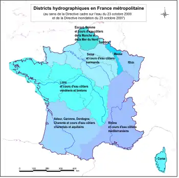 | Adour-Garonne | Adour, Garonne, Dordogne, Charente et cours d'eau côtiers charentais et aquitains | 1 177 000 | 16 % | 7 % | 18 | |
