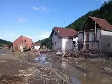 En , de nombreuses inondations touchent une vaste région de l'Europe du Sud-Est, ainsi que l'Europe centrale. Entre les 13 et , la dépression météorologique nommée Yvette[11], apporte les plus fortes inondations. Les précipitations relevées en Bosnie-Herzégovine et en Serbie sont les plus importantes enregistrées en 120 ans de mesures météorologiques. Le , environ 49 personnes meurent en raison de la situation, et une centaine de milliers d'autres sont forcées d'évacuer leurs foyers[12]. Les autorités indiquent que les inondations ont affecté plus de 1,6 million de personnes en Serbie et en Bosnie, après seulement une semaine[13].