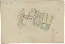 Le domaine est alors divisé en six parcelles : La Saulsaie, La Grange, Rollet, La Montanière, Les Chaneaux, La Lombardière et La Catherine[a 1].
