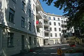 Les bâtiments de l'Institut d'Helsinki occupe complètement l'îlot urbain délimité par Helsinginkatu, Kolmas linja, Alppikatu, ainsi qu'une piste piétonne et cyclable entre le bloc et la zone des villas de Linnunlaulu.