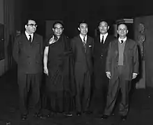 Lionello Lanciotti, guéshé Jampel Singe, Lobsang Samten, Namkhai Norbu Rinpoché et Luciano Petech en 1961 à l'IsMEO à Rome