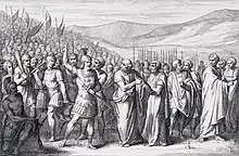 Au début de son histoire, Rome a été dominée par une succession de rois[26]. Les auteurs antiques font débuter cette ère, la Royauté romaine, en Elle se termine en avec la chute de la Royauté et la fondation légendaire de la République à la tête de laquelle sont placés deux consuls élus par le peuple[27].