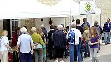 Le stand IGKT France devant la Corderie Royale de Rochefort-sur-Mer (France) le jour de la mise à l'eau de l'Hermione en juillet 2012.