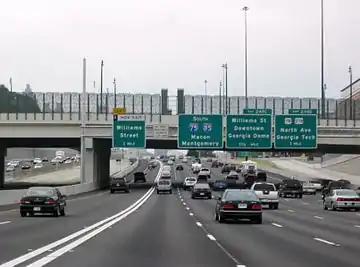 Dans le sud de la Géorgie, l'Interstate 75 traverse un territoire peu urbanisé, en se dirigeant vers le nord. Elle arrive ensuite à Macon dans le centre de l'état où elle croise l'Interstate 16, puis tourne vers le nord-nord-ouest pour rejoindre la ville d'Atlanta. Elle est la principale autoroute nord-sud d'Atlanta, et connecte principalement la ville à son aéroport, l'aéroport international Hartsfield-Jackson d'Atlanta. Elle passe également à l'est du centre-ville. Elle quitte Atlanta par le nord-ouest puis traverse le territoire montagneux des Appalaches, jusqu'à la frontière avec le Tennessee.
