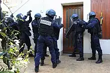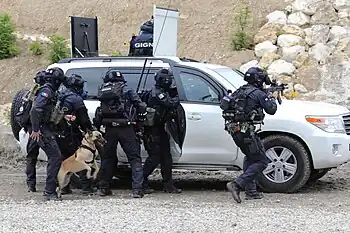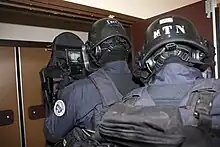 - l‘intervention intermédiaire qui regroupe un ensemble de techniques mises en œuvre par certaines unités dans des situations comportant un niveau de danger potentiellement plus élevé. Il s'agit en général d'interventions planifiées, comme les interpellations domiciliaires mais il peut s'agir également d'interventions en urgence, par exemple à l'occasion d'une attaque terroriste[2].