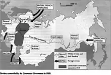 Les opérations impliquèrent les forces de 14 nations en vue de soutenir les Armées blanches tzaristes et les indépendantistes des nations non-russes de l'ex-Empire dans leur lutte contre les bolchéviques. Toutefois, les efforts des Alliés seront marqués par la lassitude de leurs troupes, le déficit de coordination et le manque de soutien de l'opinion publique dans les pays occidentaux (y compris parmi les soldats, dont beaucoup furent sympathisants de la cause bolchevique). Dans les dernières semaines de 1918, Clemenceau décide d'une importante intervention en mer Noire pour soutenir les armées blanches dans le sud[2]. Mais les moyens engagés fondent avec la démobilisation de l'armée française, et les troupes ne comprennent pas les motifs de cette guerre lointaine. Au printemps 1919, l'échec de l'expédition est consommé et la flotte française est secouée par une importante mutinerie. En , les Alliés se retirent de Russie. Seul l'empire du Japon qui, le premier, avait envoyé quelques forces en Sibérie dans les premiers jours d'avril 1918 continue de soutenir les Russes blancs jusqu'en , date du retrait de l'Armée impériale japonaise.