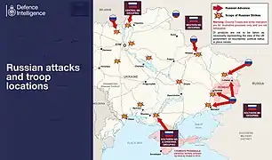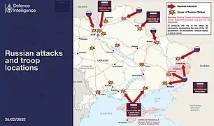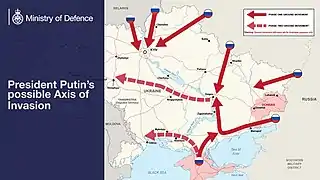 L'invasion de l'Ukraine par la Russie est un conflit déclenché le par ordre du président russe Vladimir Poutine, à partir de la Russie, de la Biélorussie et des territoires ukrainiens occupés par les Russes depuis la guerre russo-ukrainienne de 2014, à savoir la Crimée et les républiques populaires autoproclamées de Donetsk et de Lougansk.