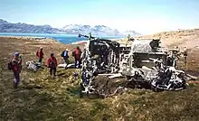 L'hélicoptère est repéré par Mills et ses hommes et doit faire face à un feu intense à l'arme automatique. Le pilote parvient à traverser la baie et à faire atterrir en catastrophe son appareil sur la rive sud de la baie. Deux hommes sont tués et quatre blessés lors de l'atterrissage. Dans le même temps, les troupes de Luna commencent leur marche en direction de Shackleton House, mais les tirs nourris des Royal Marines les forcent à s'immobiliser[5]. Luna demande alors au Guerrico un soutien au moyen de son artillerie.