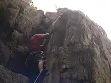 File:039 Blavet Chaise du Diable.jpg La commune est assez vallonnée. L'altitude varie entre 2 mètres au niveau de la dernière écluse du canal du Blavet (écluse de Polvern) et 111 mètres dans l'angle nord-ouest du territoire communal sur le plateau dominant la vallée du Blavet, situé le plus souvent entre 90 mètres et 110 mètres d'altitude, et qui forme la majeure partie du finage communal. La vallée du Blavet est encaissée d'une soixantaine de mètres par rapport à ce plateau et présente à certains endroits des escarpements rocheux (notamment la Chaise du Diable au nord de Lochrist, à l'est du hameau de Kerdréan, constitué de mylonite d'époque hercynienne), même si ses versants sont le plus souvent boisés. Ce relief accidenté explique le nom attribué au plus connu des clubs de football locaux (US Montagnarde) et à une compétition cycliste ("Circuit des grimpeurs" passant plusieurs fois par le lieu-dit "La Montagne"[1]), le quartier situé à l'ouest de Lochrist étant lui-même dénommé "La Montagne".