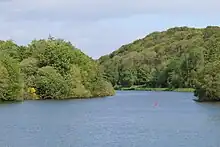 La vallée du Blavet canalisé : vue vers l'aval depuis l'écluse de Trébihan (à gauche rive gauche côté Languidic, à droite rive droite côté Inzinzac-Lochrist.