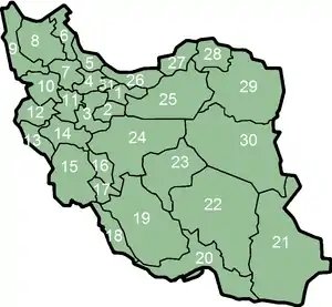 L’Iran (en persan : ايران, Irân), en forme longue la république islamique d'Iran (en persan : جمهوری اسلامی ايراﻥ, Jomhuriye Eslâmiye Irân ou JEI), est un pays d'Asie de l'Ouest, historiquement appelé la Perse[6]. Bordé au nord par la mer Caspienne, au sud-est par le golfe d'Oman et au sud par le golfe Persique, l'Iran partage des frontières avec le Turkménistan au nord-est, l'Afghanistan à l'est, le Pakistan au sud-est, l'Irak à l'ouest, la Turquie, l'Arménie et l'Azerbaïdjan au nord-ouest. Le pays a une superficie de 1 648 195 km2.