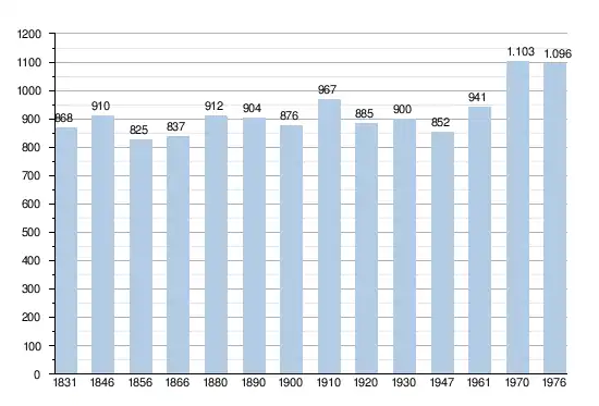 - Sources : INS, Rem. : 1831 jusqu'en 1970 = recensements, 1976 = nombre d'habitants au 31 décembre.