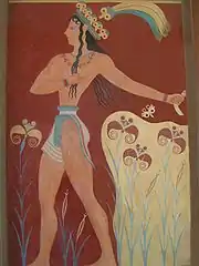 Pour les Égyptiens, l’iris est associé à Horus, le dieu Faucon, l’une des plus anciennes divinités égyptiennes[6]. Horus symbolise le soleil du matin et celui du soir. Les couleurs vives et variées de la fleur en firent très vite le symbole d’un arc-en-ciel réunissant le ciel et la terre.