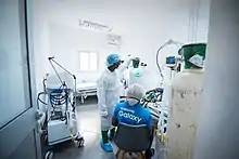 - chemise d'hôpital imperméable (ou d'une combinaison Tyvek pour tout le corps, le cas échéant) ;