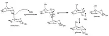 L'hydrolyse utilise l'eau pour cliver les liaisons chimiques. Le mécanisme de la sucrase-isomaltase entraîne une nette rétention de la configuration au centre anomérique[1].