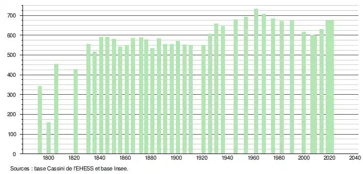 - Population municipale légale en vigueur au 1er janvier 2024, millésimée 2021, définie dans les limites territoriales en vigueur au 1er janvier 2023, date de référence statistique : 1er janvier 2021.