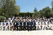 La délégation olympique israélienne avec le Président de l'État d'Israël Reuven Rivlin.