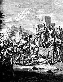 Les livres de Jérémie et d’Ézéchiel évoquent une cour de Sédécias déchirée entre des débats relatifs à la soumission à Babylone, reposant en partie sur des arguments religieux (quelle était la volonté de Yahweh ?). En 589, Sédécias cède finalement aux sirènes de la révolte, et les troupes de Nabuchodonosor II viennent à nouveau assiéger Jérusalem. Après deux années de siège, la ville est investie par les troupes ennemies, pillée, en grande partie détruite (notamment son grand temple), sa population est déportée en Babylonie[88].
