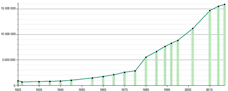 Depuis 1925, l'évolution démographique de Istanbul a été :