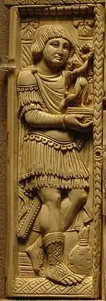 - Les autres ivoires comparables de cette époque sont en effet des diptyques ecclésiastiques tels que l'évangile de Saint-Lupicin ou la reliure d'Etschmiadzin.